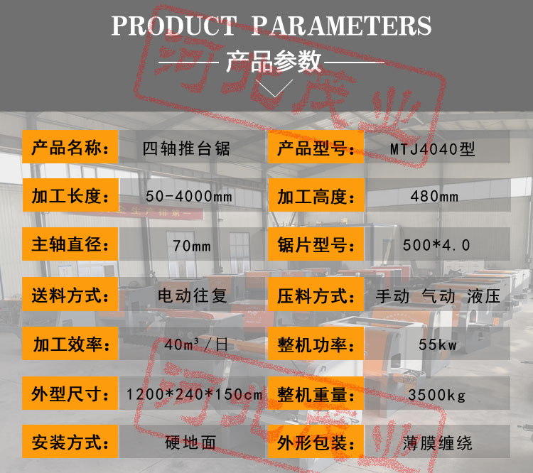 整机优势:上下四锯片,加重设计,大大提高机器稳定性和实用性,有效提高设备加工效率和降低工作量,适合任何种类木材加工。